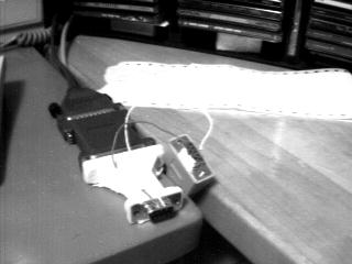 Originally this evil hack was used to connect the UPS to the PC when this page was first being built. As you can see, I cheated and neglected the ground (only 2 wires!) and it still worked. This method can be used for playing around, but for professional systems this is obviously not a viable option.